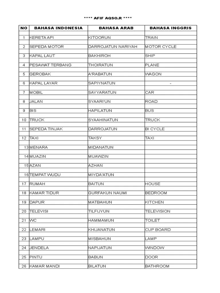 03.05.2020 · ada 3 jenis kosa kata bahasa arab dan artinya, yaitu kata benda, kata kerja, dan nomor / angka.